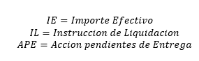 | LDRE | = | Recepción a Precios de Liquidación en Efectivo del Activo objeto de la Operación no recibido por el titular de Cuenta |